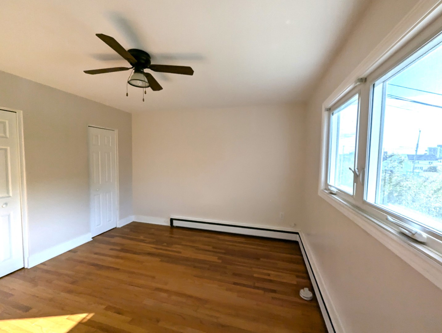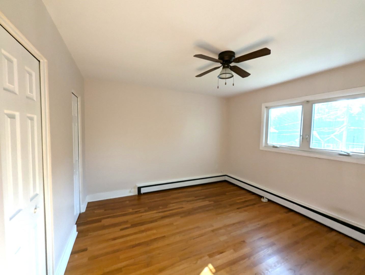 Laundry in the unit. 3 bedrooms and one full bath. 2 parking spots included. No dogs but the landlord would consider a cat.