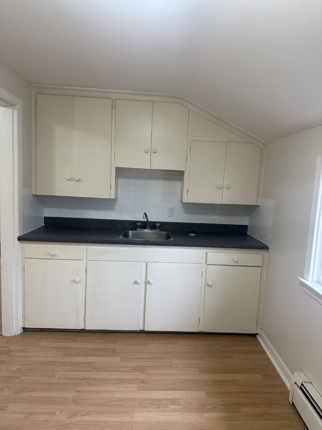Large kitchen with ample space for a dining table. One bedroom plus one full bath. Apartment has direct access to coin operated laundry services in the building. Tenant pays for power only.