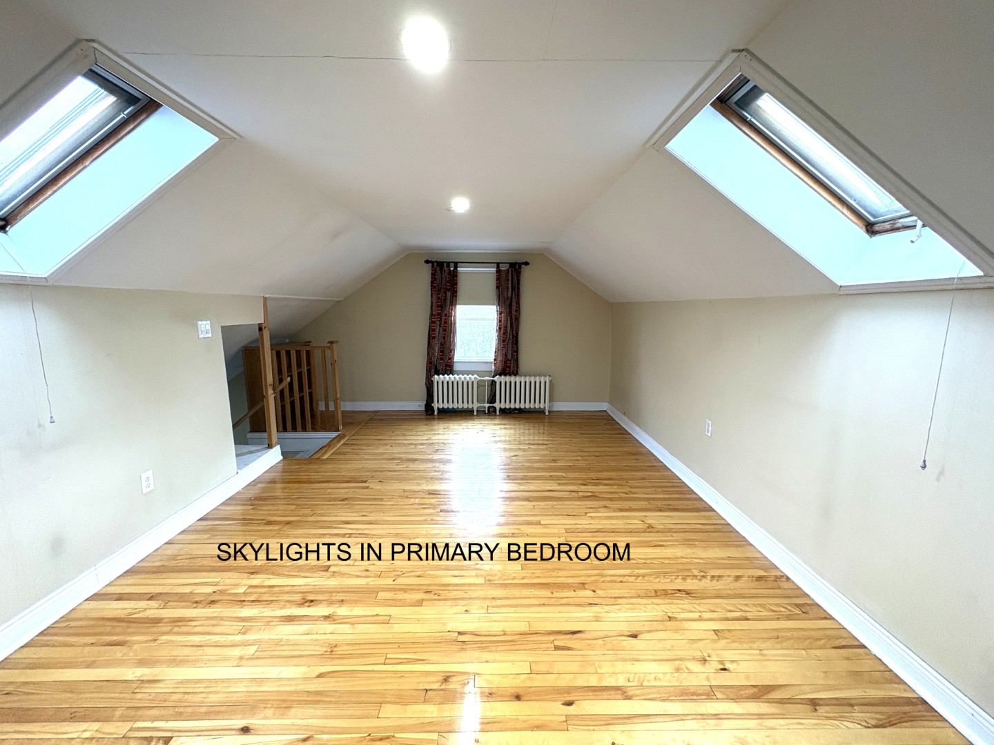 Two good-sized bedrooms on the main level along with a full bath. Huge primary bedroom on the attic level with ensuite bath with wonderful soaker tub!