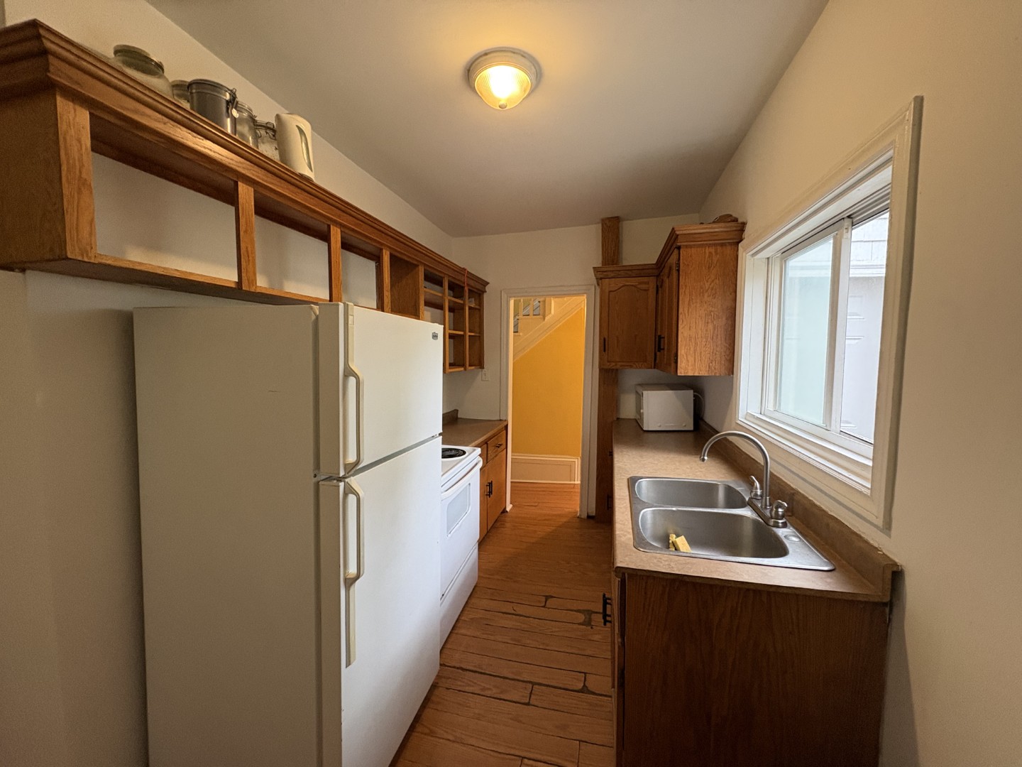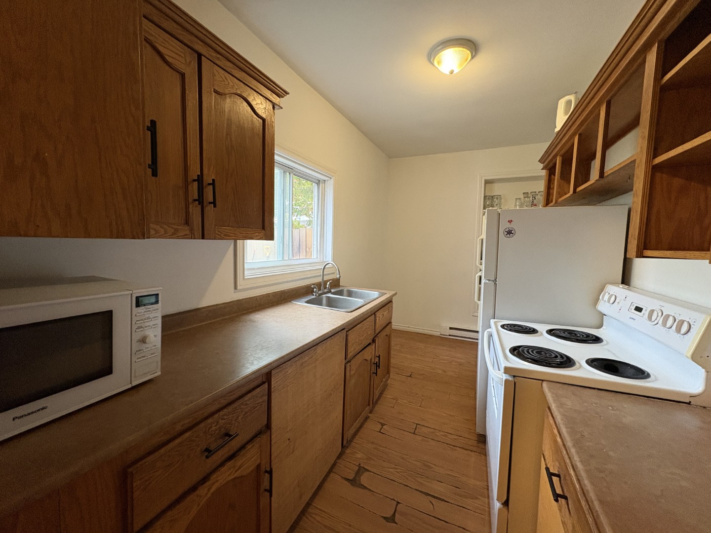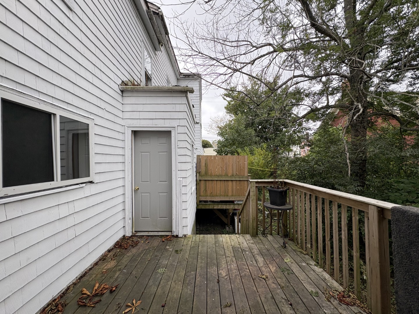 Private deck off the back entrance with access to a large, shared yard. Landlord is responsible for lawn maintenance.