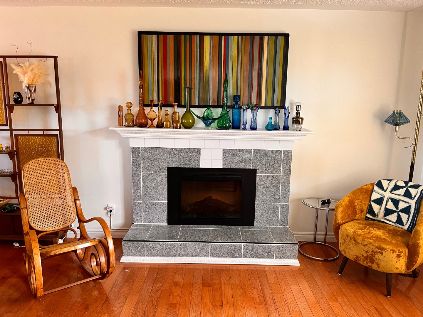 Main floor is open concept with lovely hardwood flooring and a second electric fireplace in the living area. Lovely deck off the dining area overlooking a large private yard with firepit. Modern, fully stocked kitchen with large island for extra cooking space!
