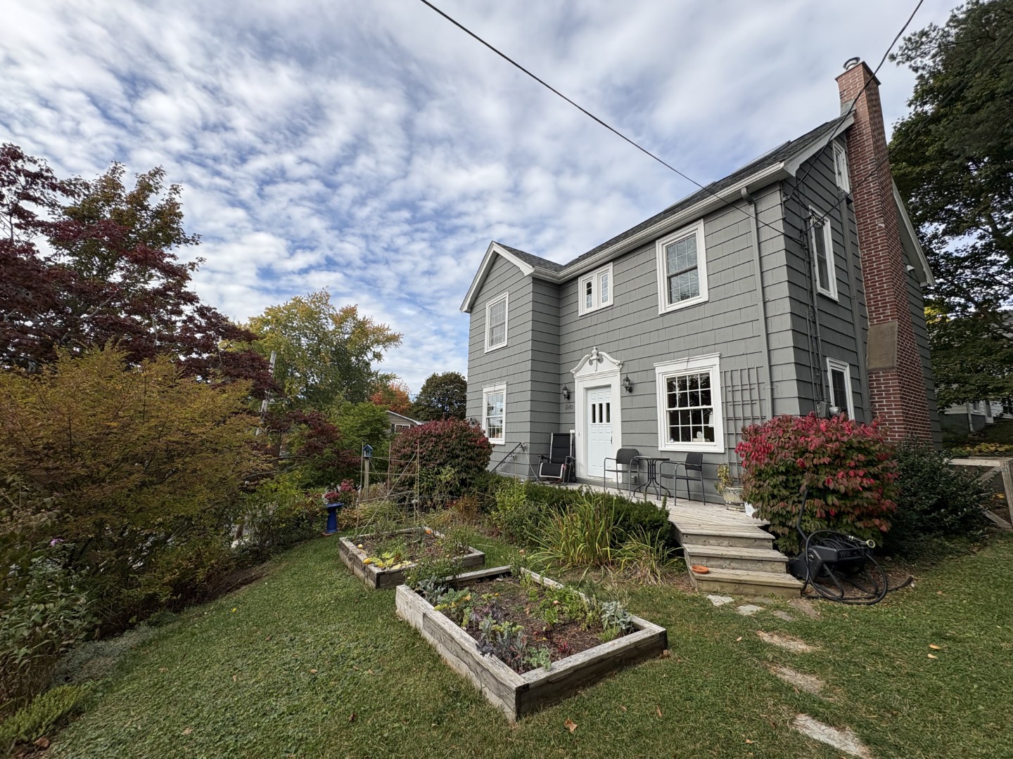 The lowest level has office space, a large and comfortable family room, a full bath and walk out to driveway. Well maintained gardens and large sundeck.