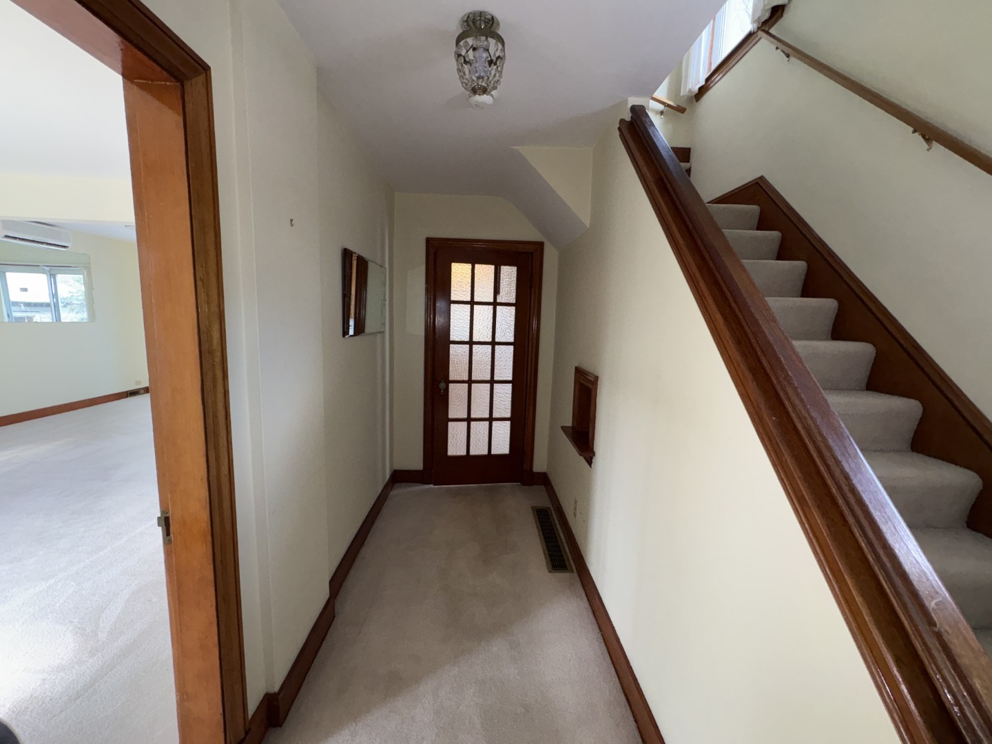 Three bedrooms upstairs, the Primary with a second Heat Pump, and one full bath. There is a second 3-pce bath with laundry facilities on the main floor just inside the side entrance.
