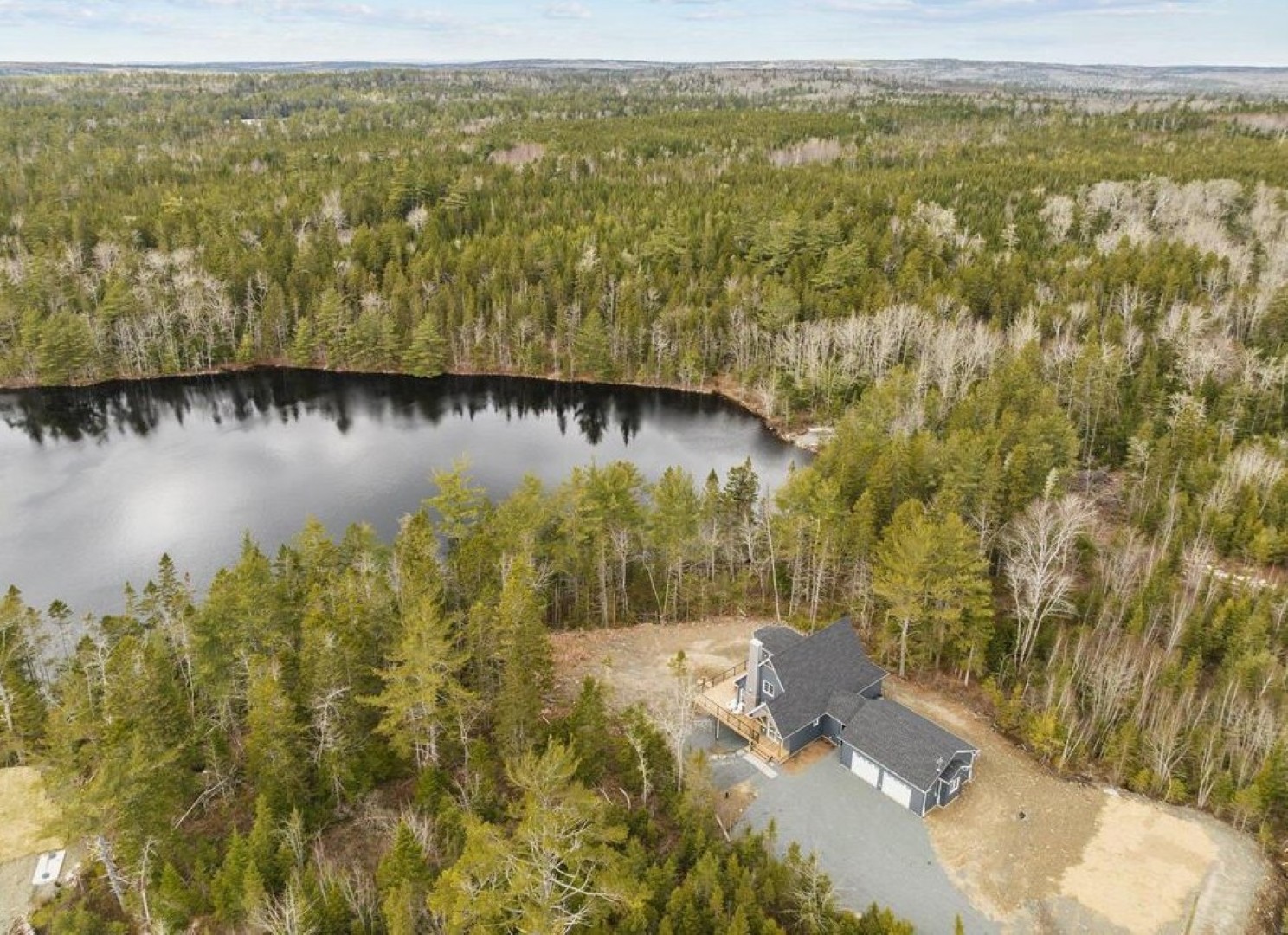 MAGNIFICENT LAKE FRONT HOME, resting on over an acre of land (located two doors down from the QEII Dream Cottage) on secluded Meek Arm Cove in Long Lake, Nova Scotia.