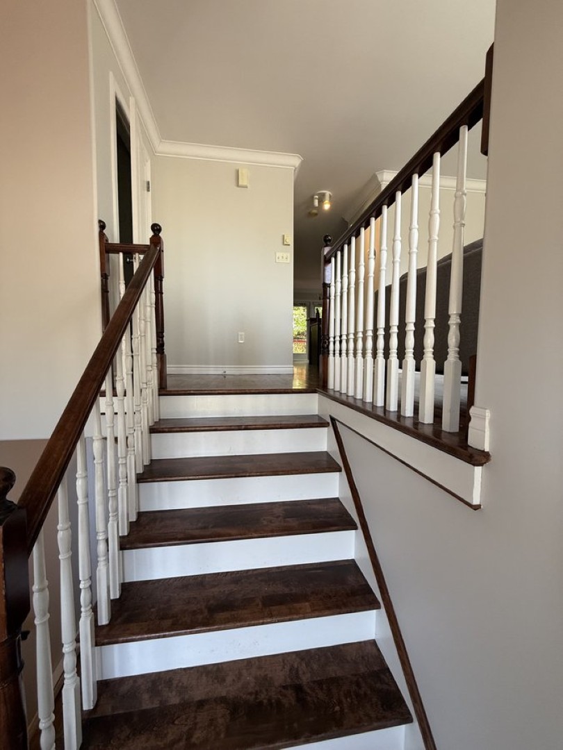 Upper level has three bedrooms, the Primary with ensuite bath and walk-in closet, second full bath and laundry. Lower level has a large rec room and second powder room.