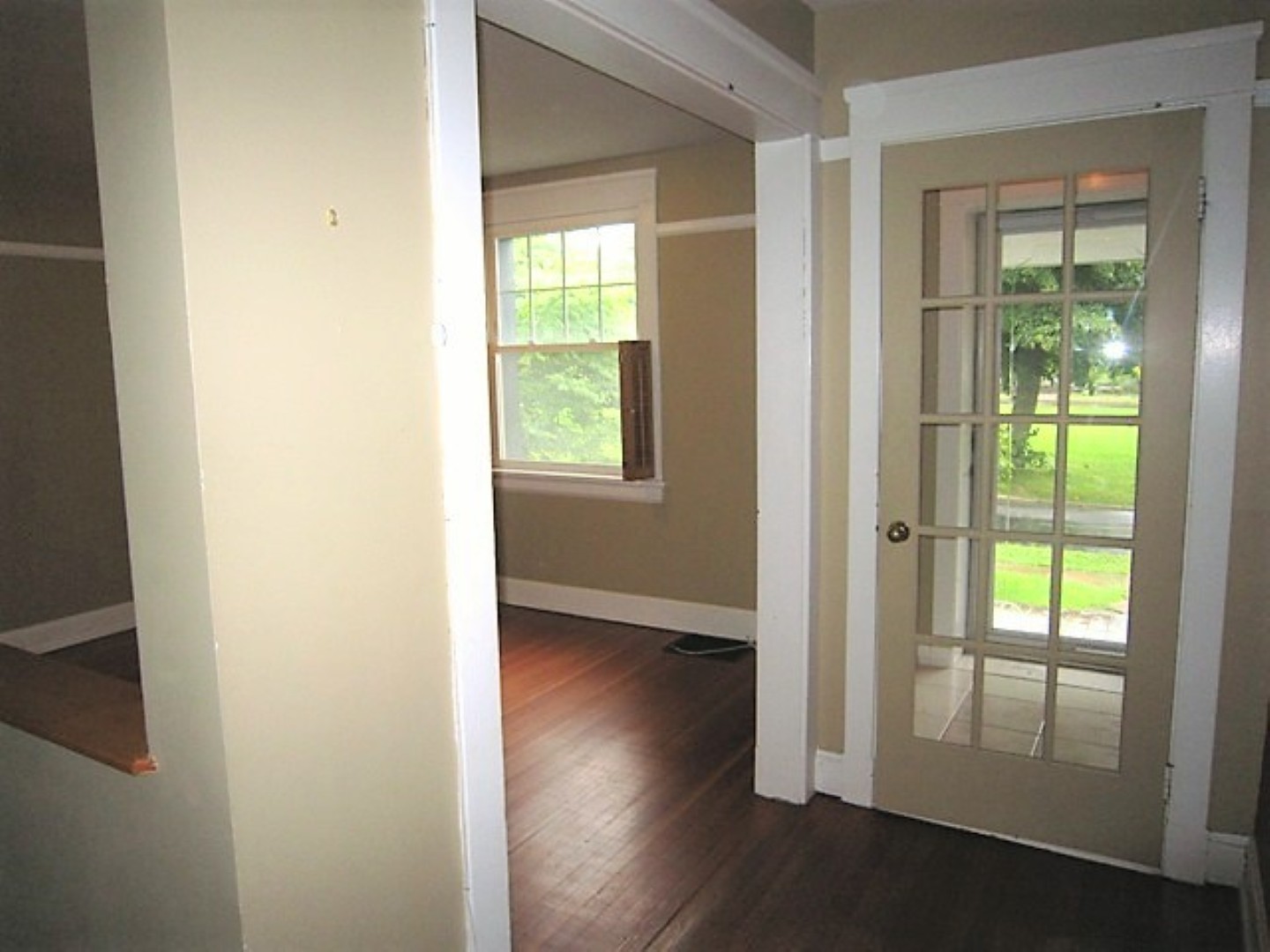Large living room. Big bright kitchen with skylights, lovely wooden cabinets, and ample room for a large table. Hardwood flooring throughout.