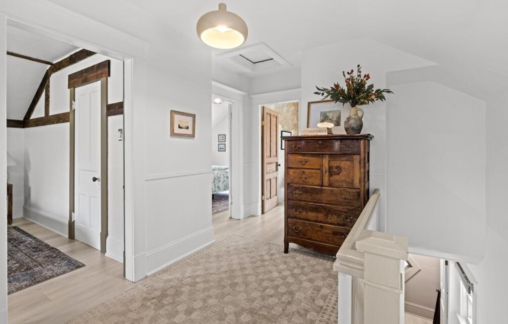 Three bedrooms upstairs along with a beautifully renovated bath. Lovely deck in the private yard and shed for extra space. The basement is unfinished but provides plenty of storage space.