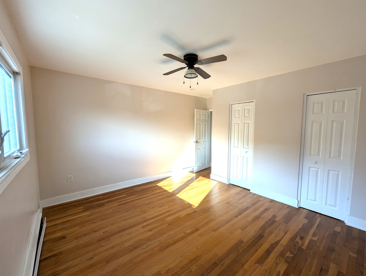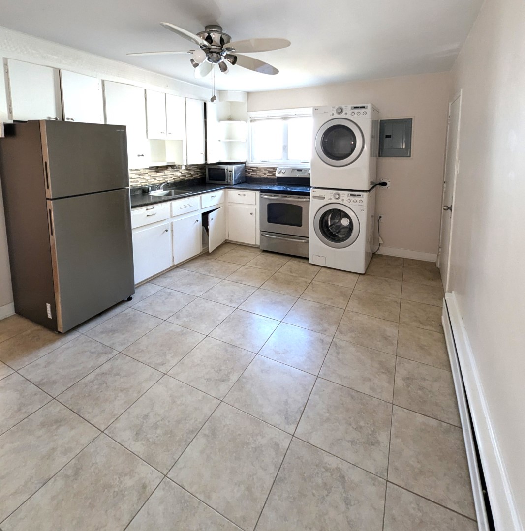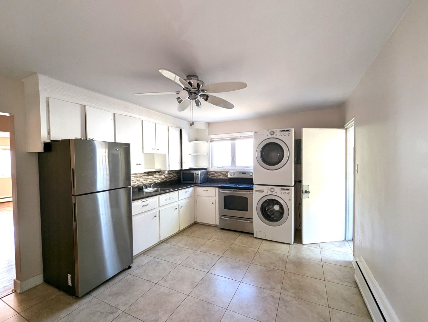 Laundry in the unit. 3 bedrooms and one full bath. 2 parking spots included. No dogs but the landlord would consider a cat.