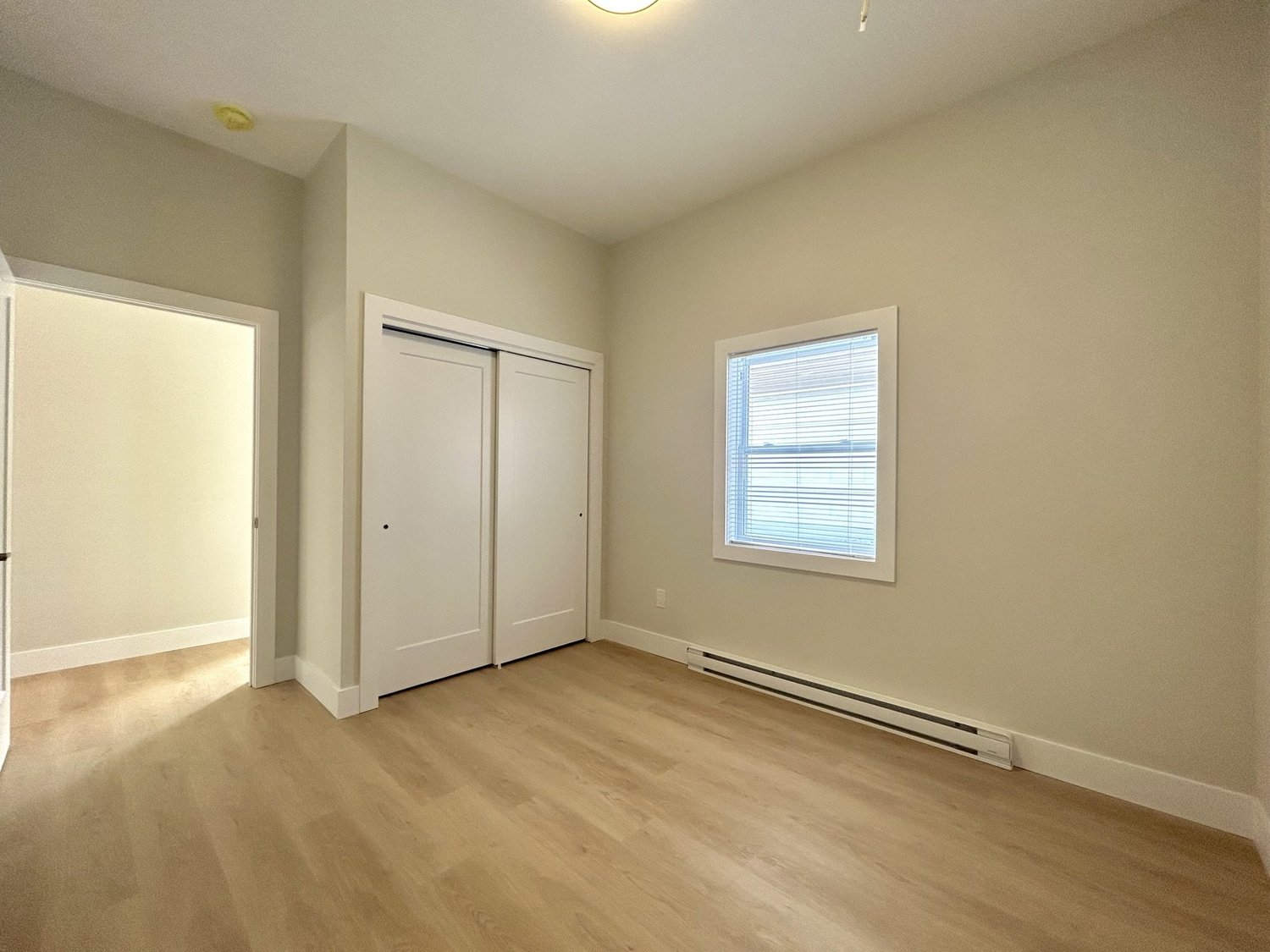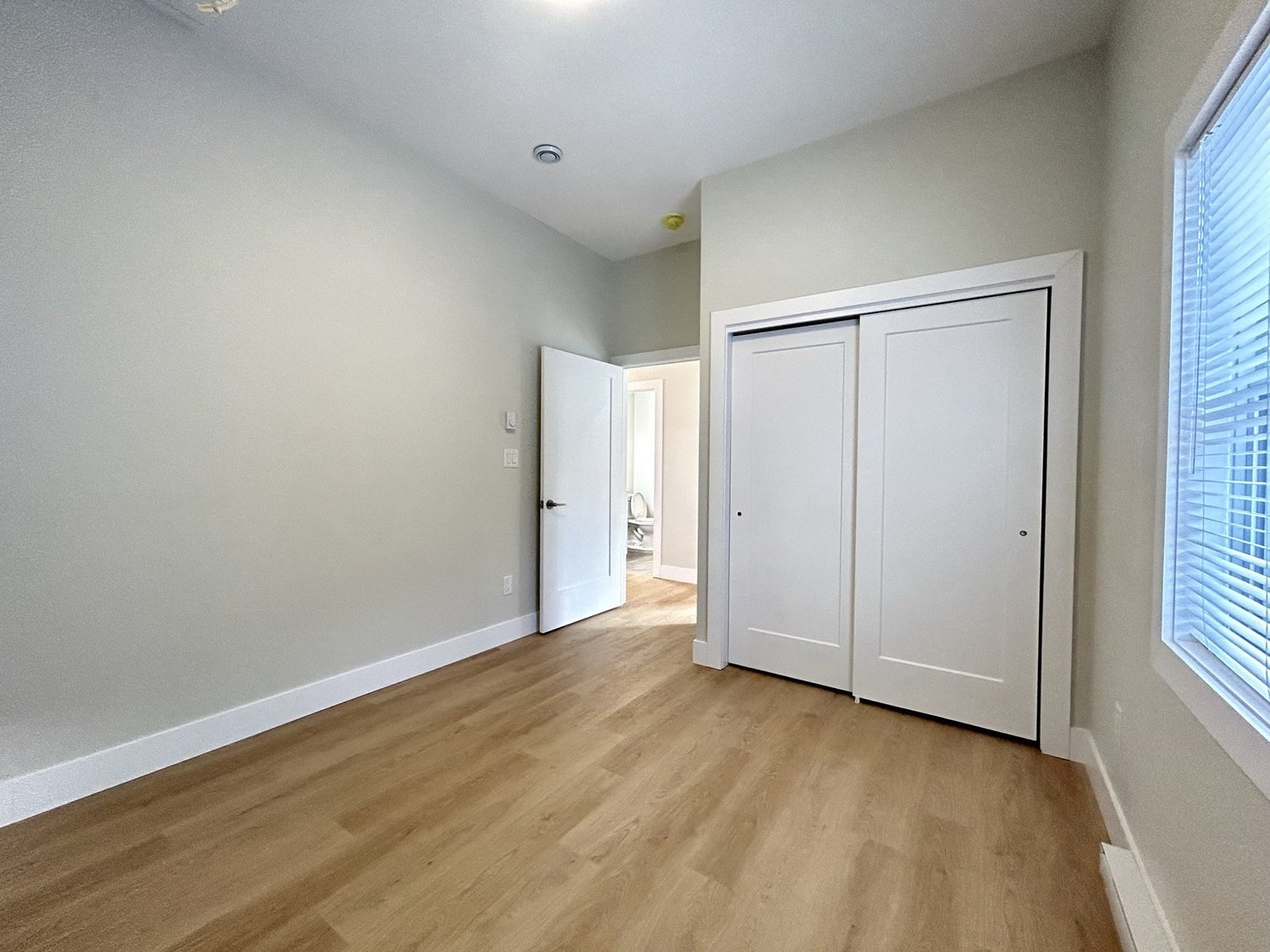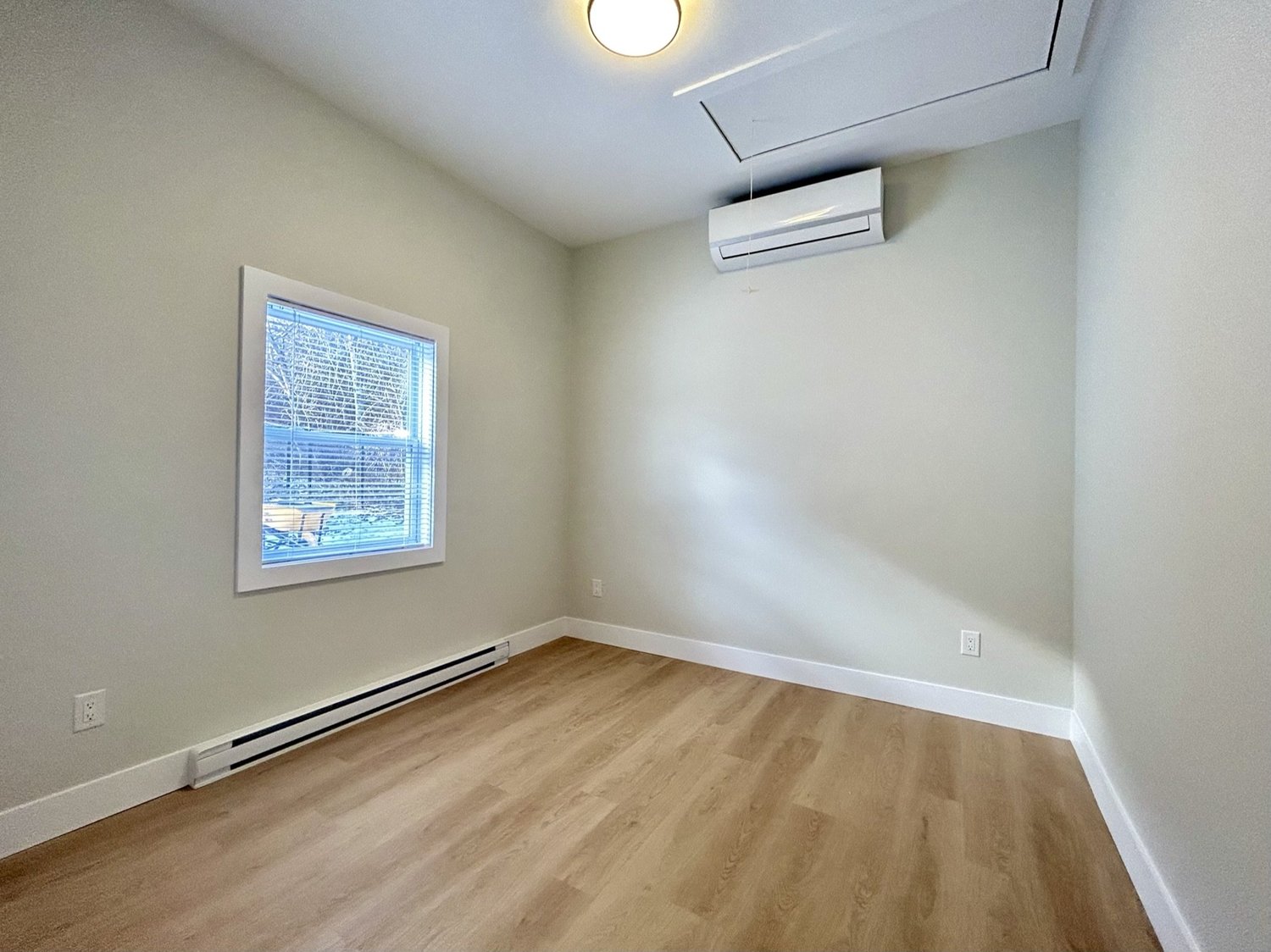 Good sized bedroom with second ductless heat pump. Sliding patio doors to a private deck. One full bath.