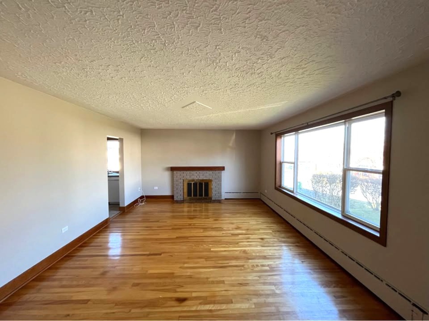 Very spacious, open concept living and dining area with beautiful hardwood flooring and decorative fireplace. Large kitchen with plenty of counter and cupboard space along with room for a small table.