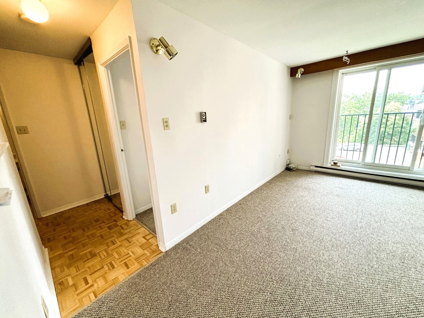The bright living room with southwest exposure and harbour view opens to dining room and to Juliet balcony. Efficient galley kitchen has new countertops and stainless-steel appliances.