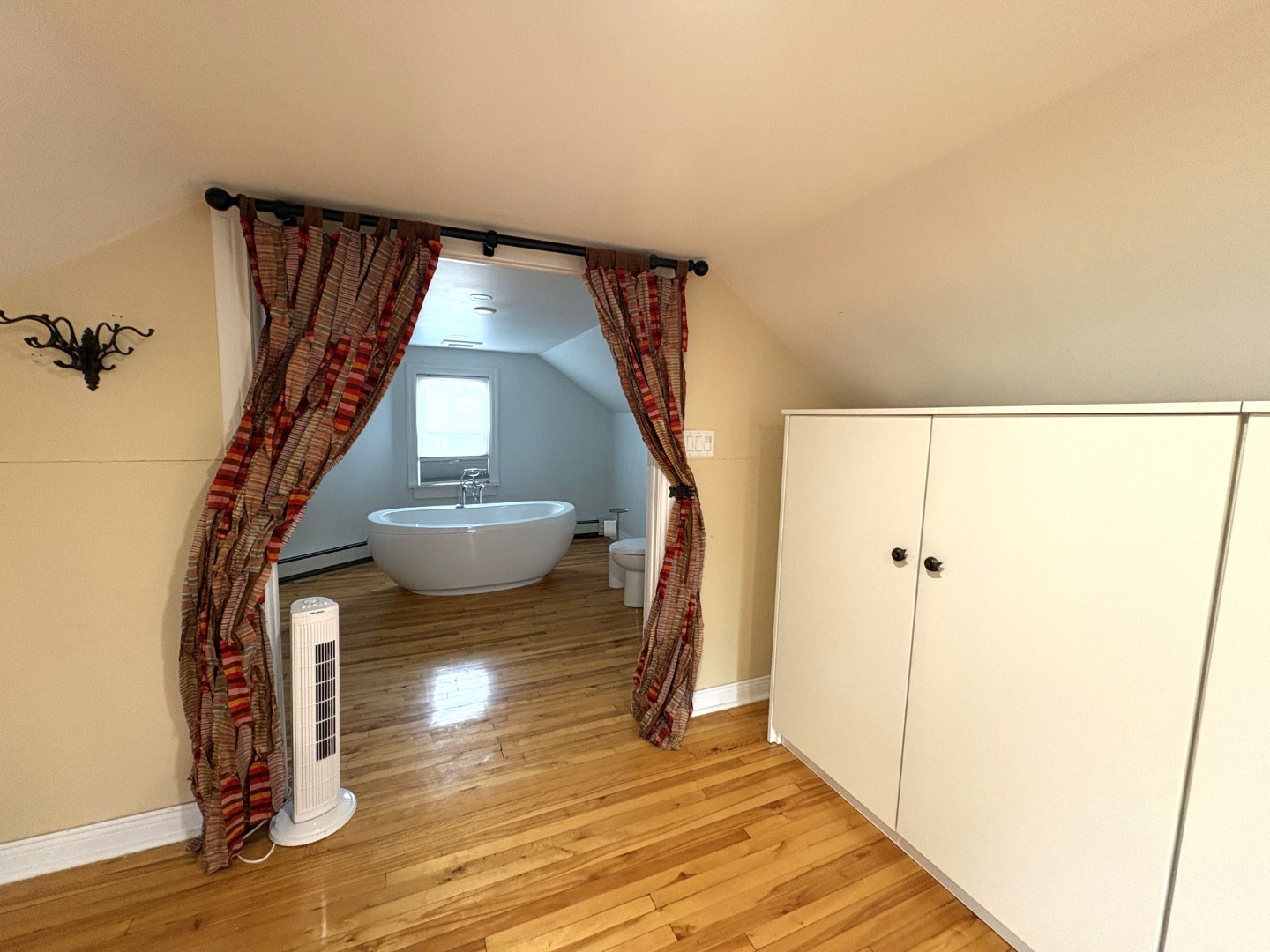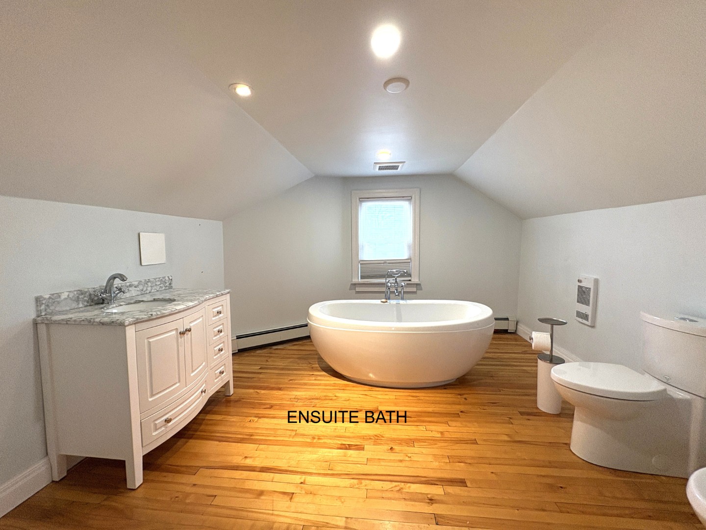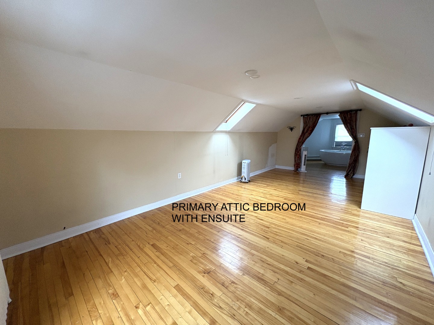 Two good-sized bedrooms on the main level along with a full bath. Huge primary bedroom on the attic level with ensuite bath with wonderful soaker tub!