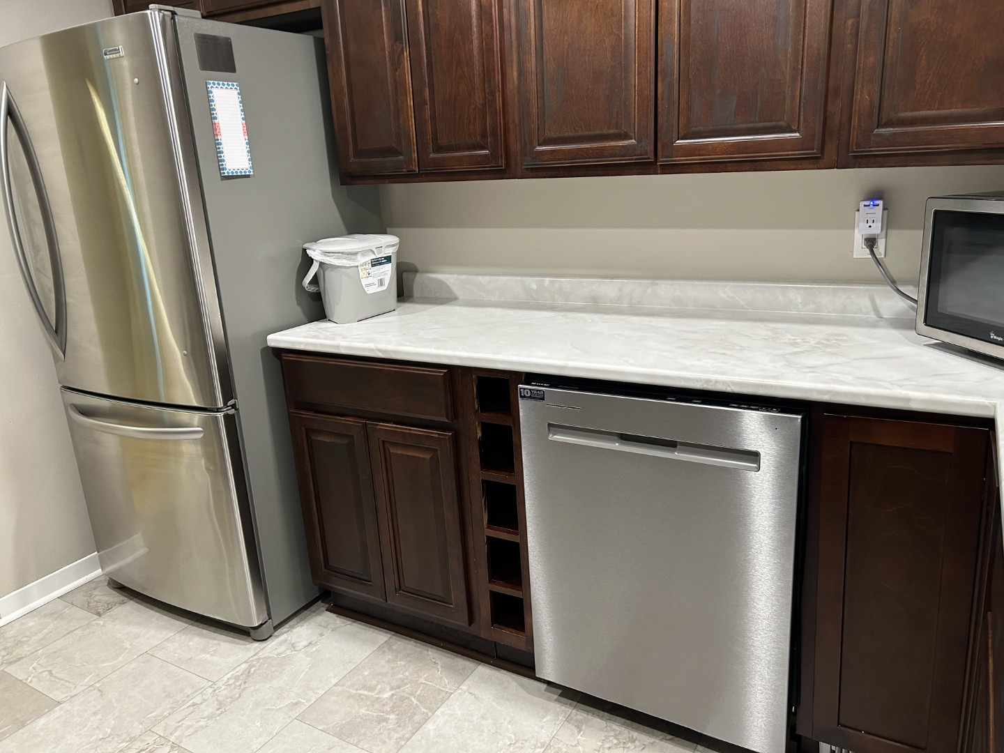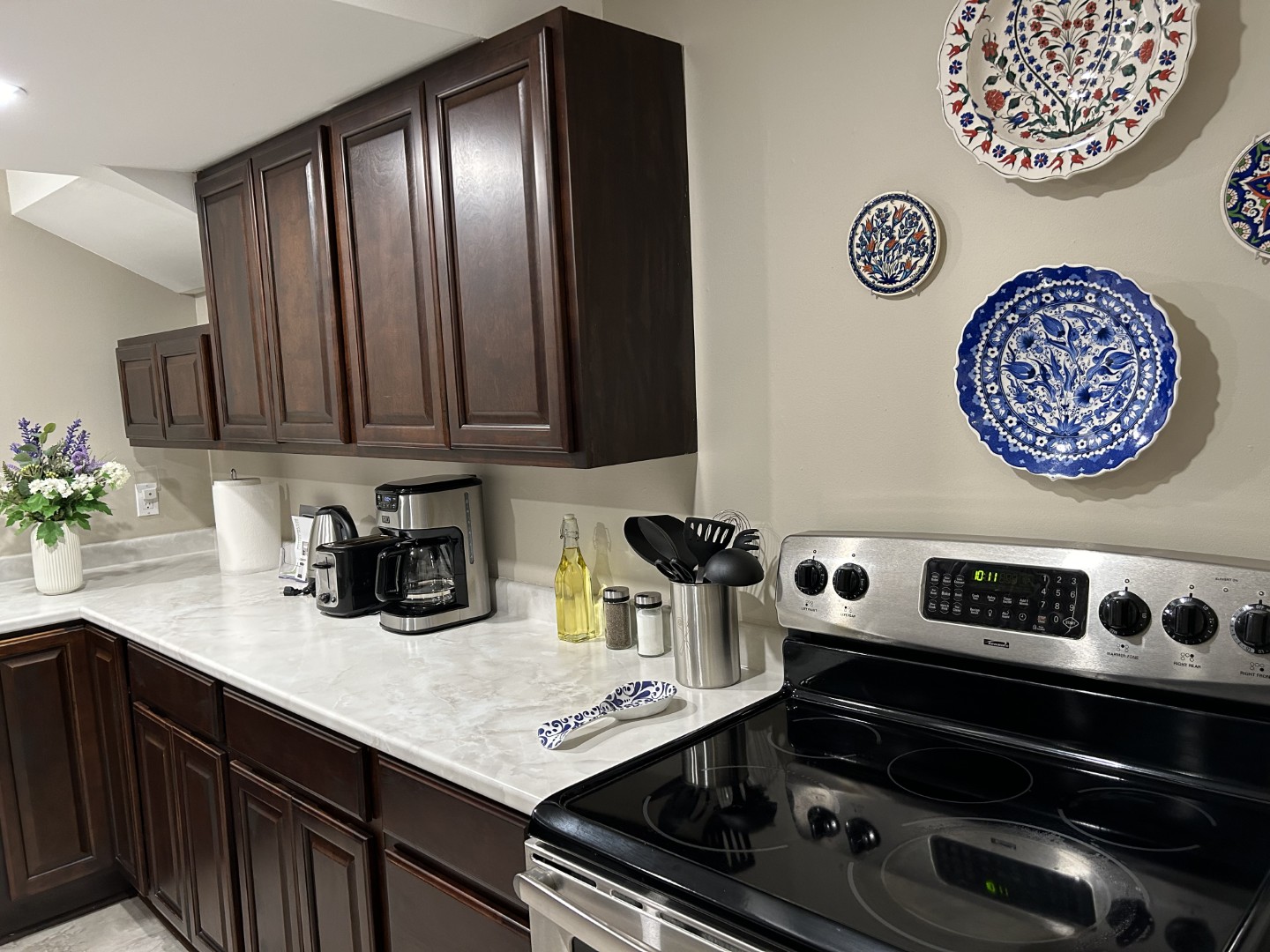 This is a large apartment with 1166 sq ft of beautiful, comfortable living space. Open concept living and dining area with electric fireplace and 43 HD Smart TV. Large window and sliding glass doors providing access to the backyard while bathing the space in natural sunlight.