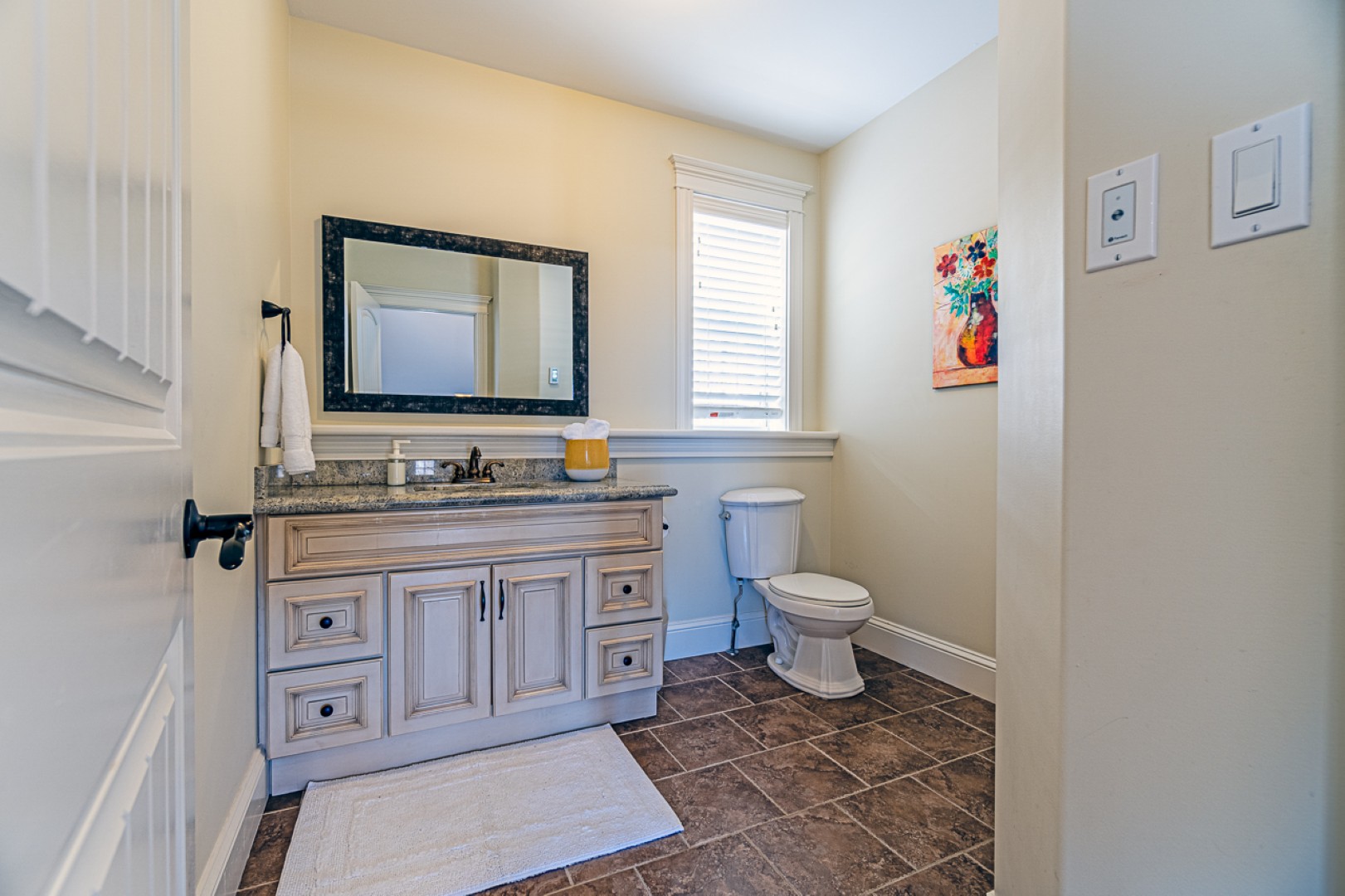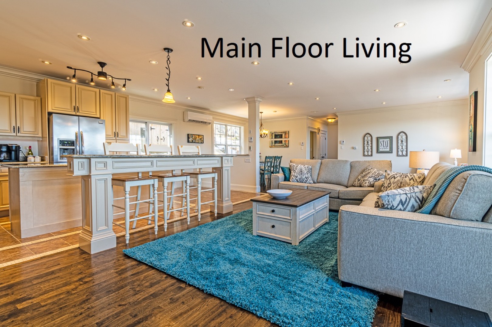 Open concept main floor features a chefs kitchen with plenty of storage, breakfast bar and granite counters. Quality craftsmanship with custom tile work and a propane fireplace with built in cabinetry and custom mantle. This is the ideal space for family living and entertaining. Large powder room on main floor.