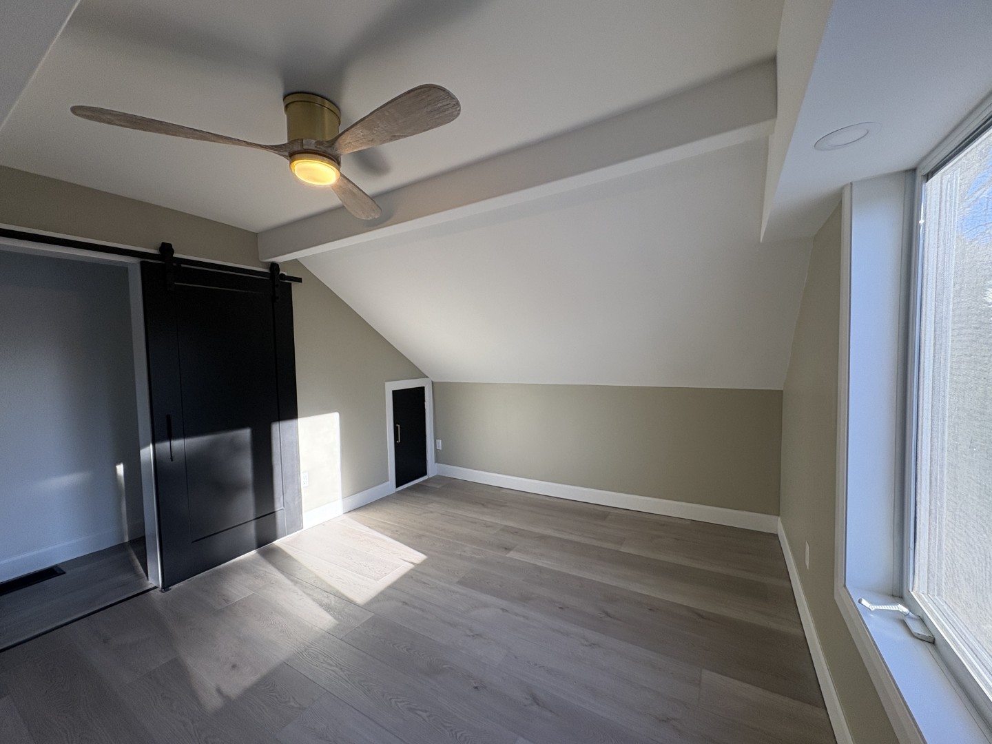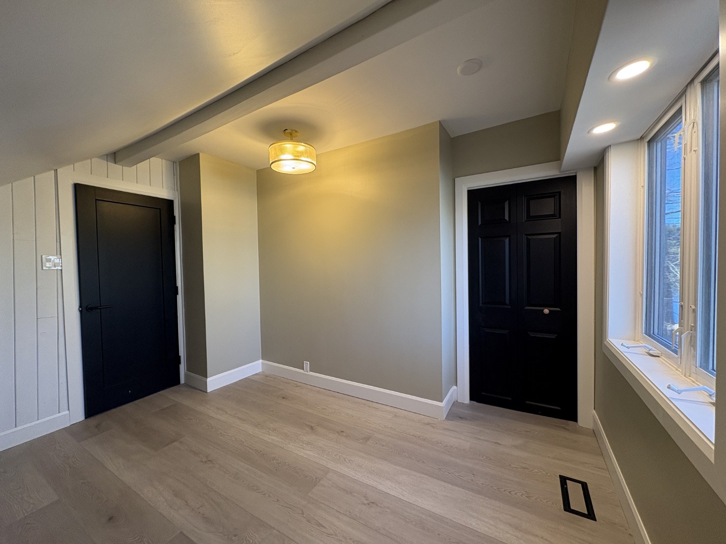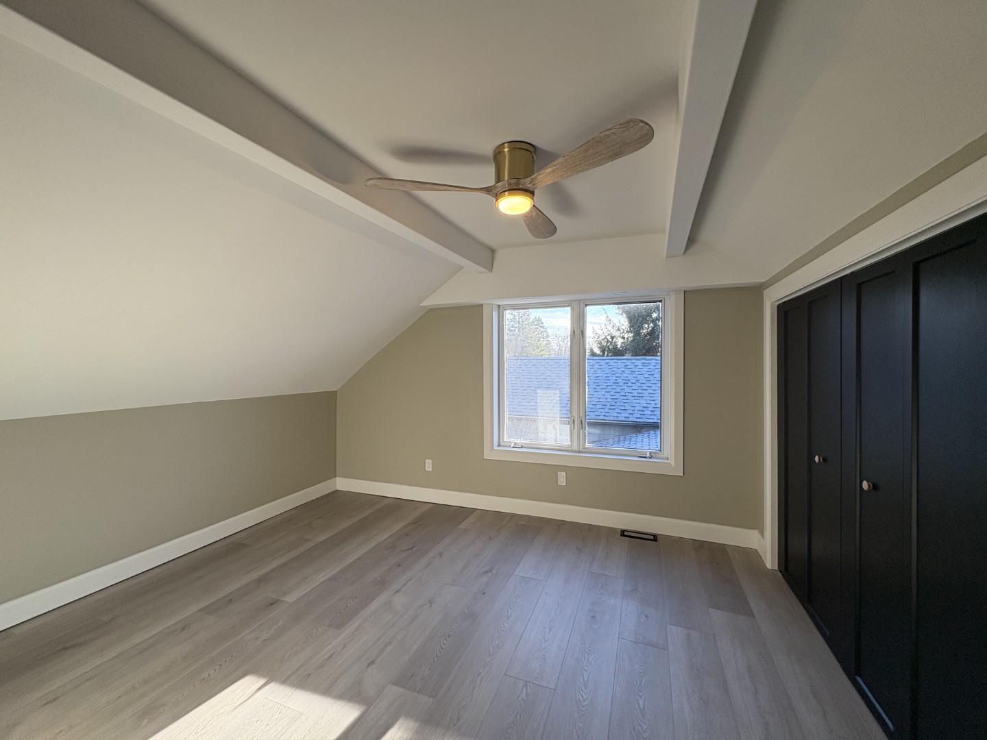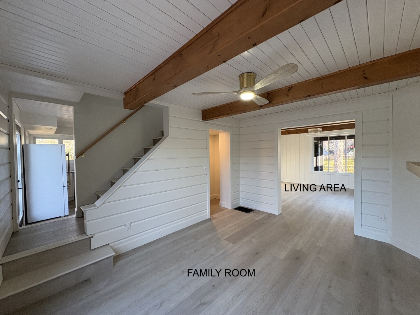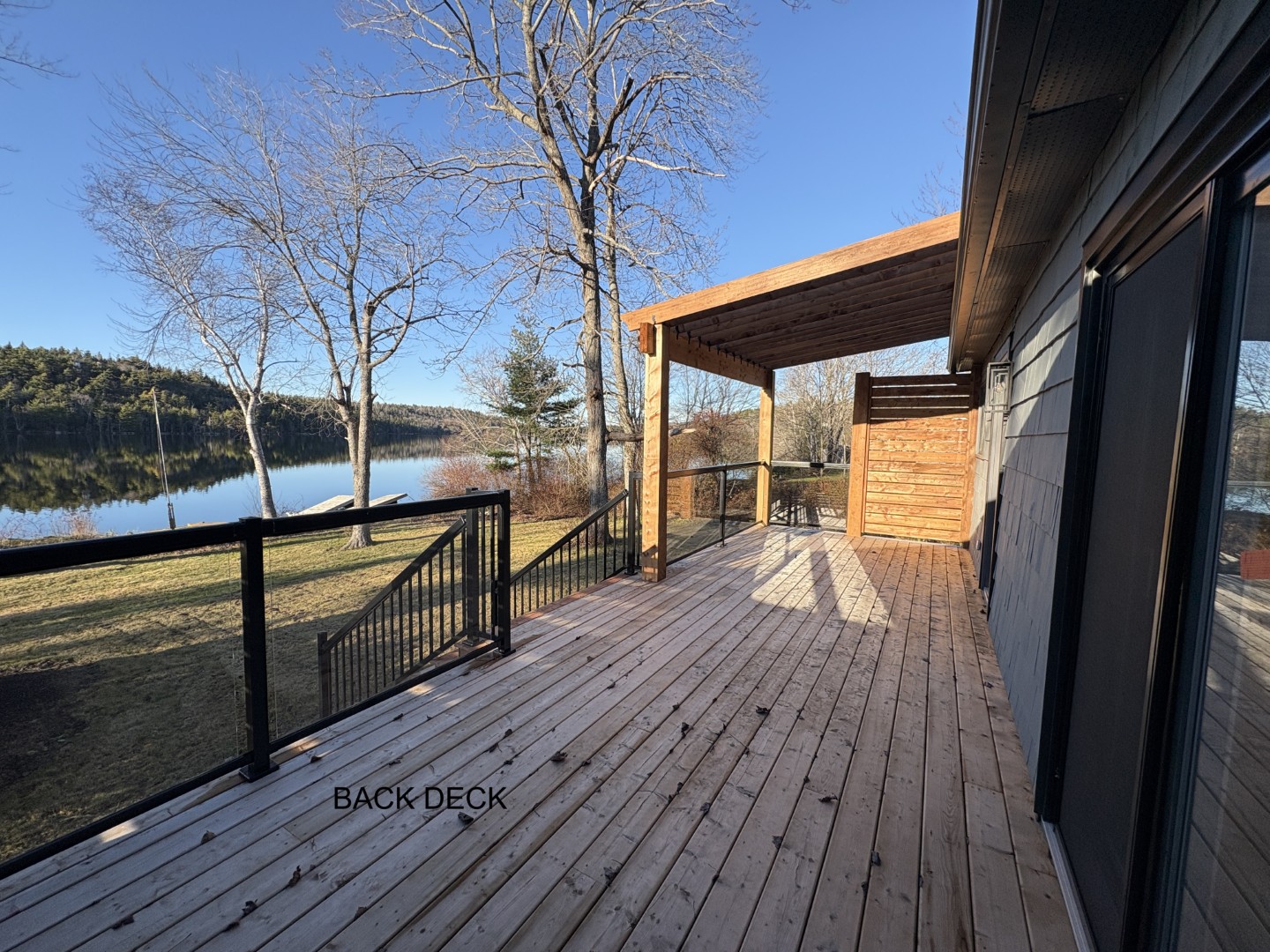 Exposed wooden beams lend a warm and rustic feel throughout the space. Gorgeous views of Fletchers Lake from the rear deck. Dock is shared with your immediate neighbors only.