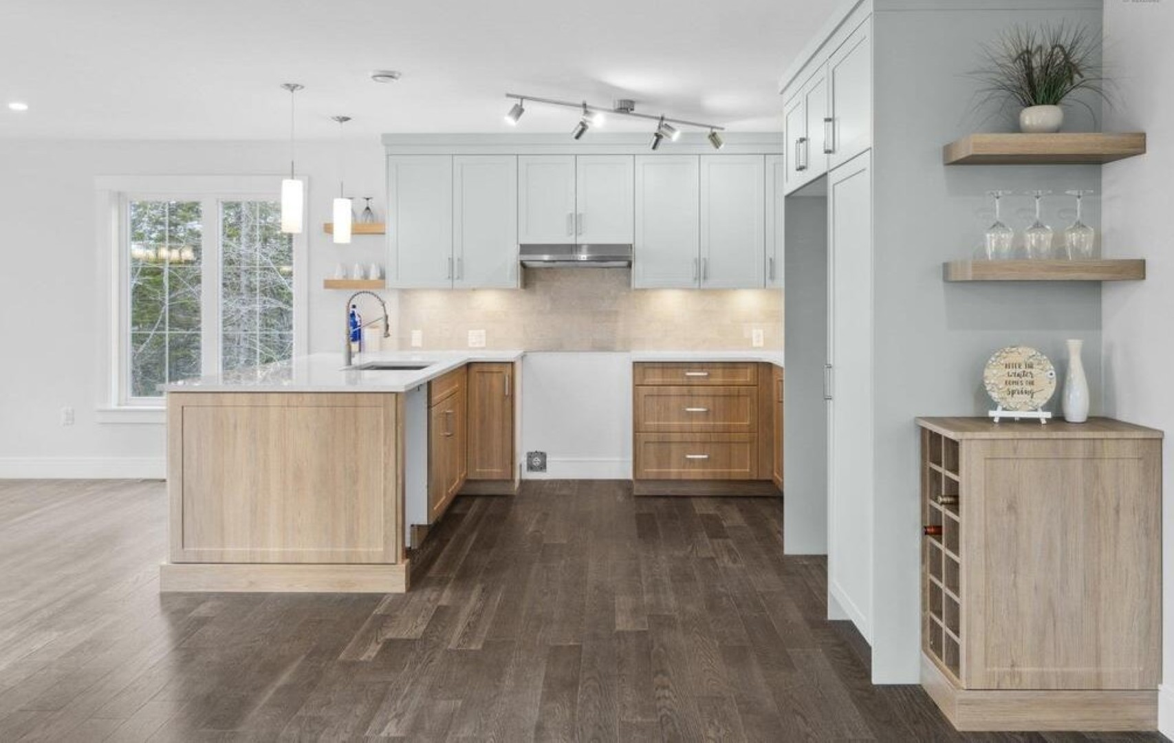 Brand New Build offering 2800 sq ft of living space! Ideal location for swimming, boating, paddle boarding, hiking and more. Private path down to 135 feet of your own private lakeshore! The main floor features a bright open-concept layout, quartz counters-tops, eat-in kitchen peninsula, high quality engineered hardwood floors, propane fireplace, and a dining room featuring stunning views of Long Lake’s Meek Arm Cove with patio doors to your expansive lake-facing, wrap around deck.