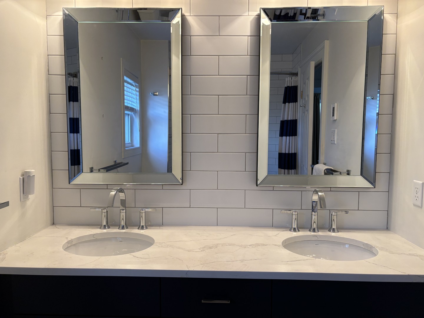 Second level has 2 good-sized bedrooms, both with two closets, and beautiful full bath with double vanity.