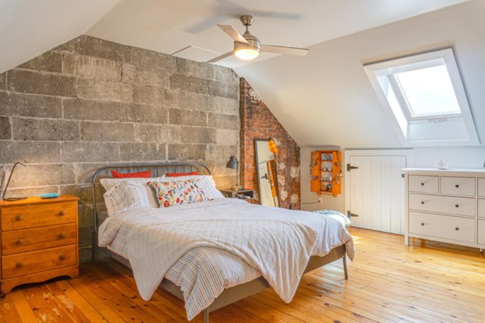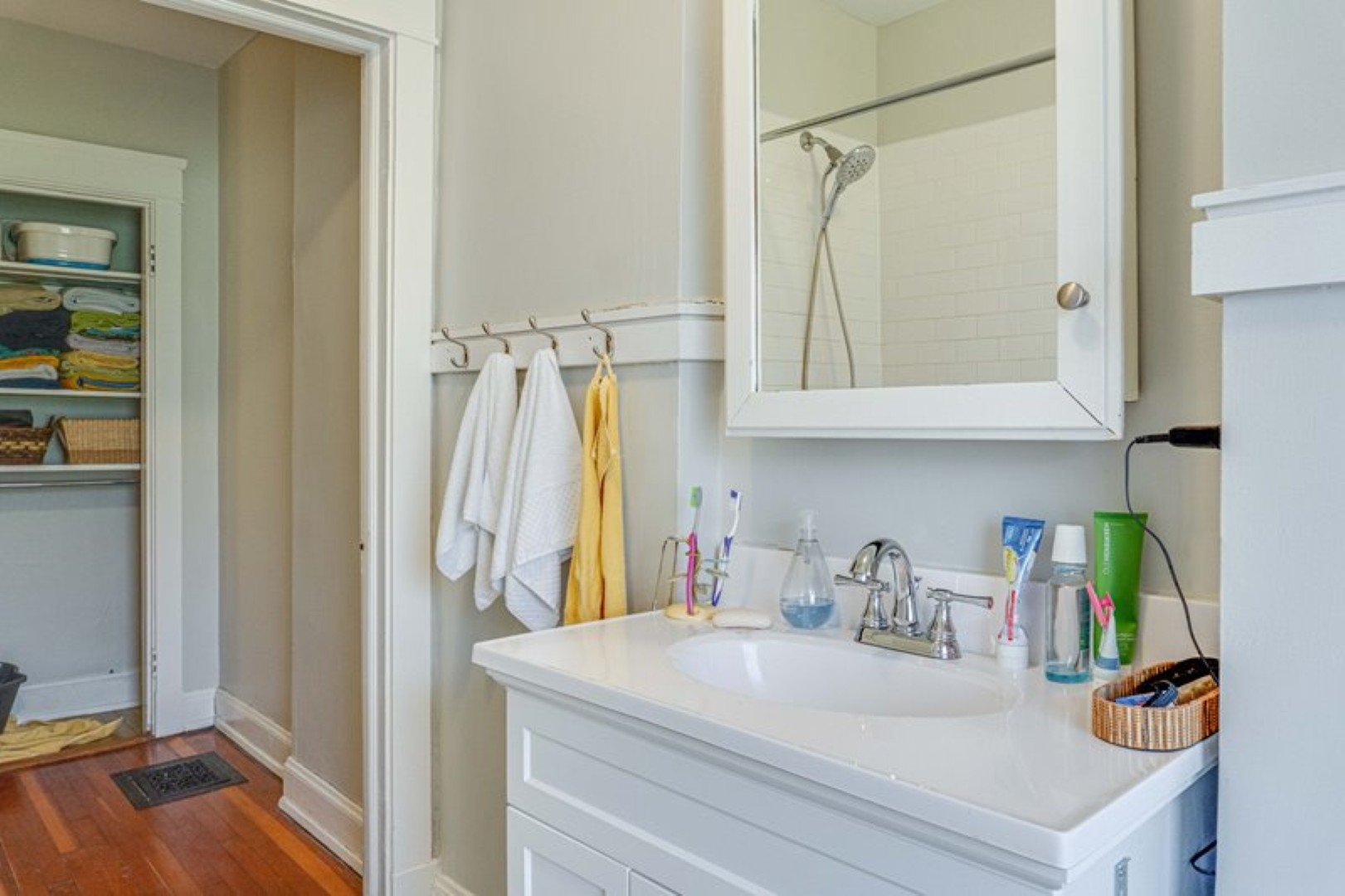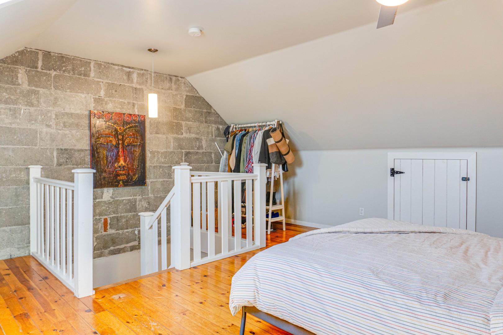 Three bedrooms plus full bath on the second level. Lovely attic space with charming, exposed brick wall offers additional flex space. Large living room. Big bright kitchen with skylights, lovely wooden cabinets, and ample room for a large table. Hardwood flooring throughout.