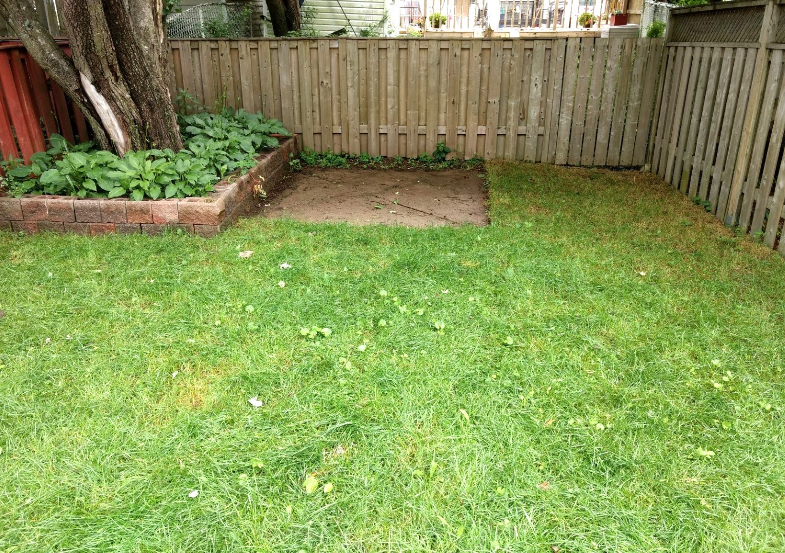 Large living room with hardwood flooring opens to a beautiful, fenced back garden with sunny patio and a deck with built in storage bench. Kitchen has all new cabinetry, plenty of counter and cupboard space, and a dining nook for eating.